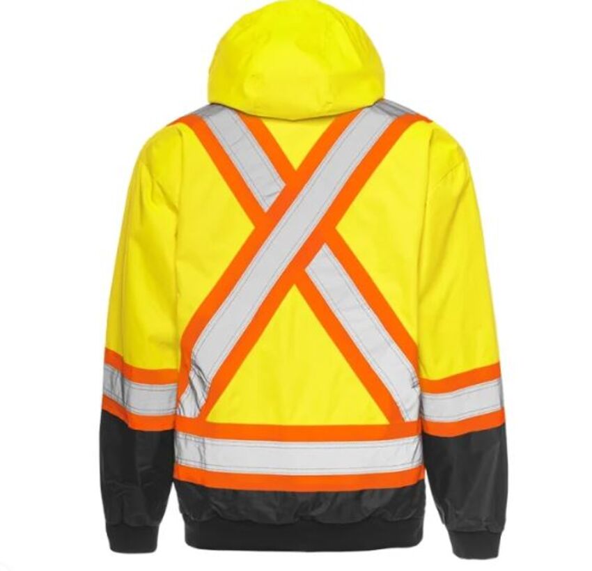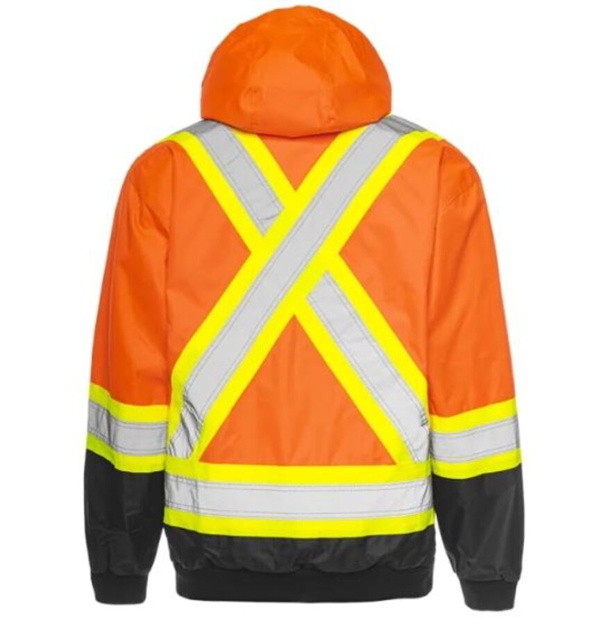 Bande de couleur contrastée de 4″ avec bande argentée réfléchissante de 2″ à l'avant, à l'arrière et sur les bras pour une visibilité accrue