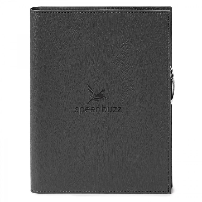 Comprenant un bloc-notes à reliure spirale de 80 feuilles lignées en papier ivoire certifié FSC, une pochette pour cartes et un stylo en bambou PJL-5182 qui s’insère dans la bride élastique de couleur assortie, il ne reste qu’à ajouter votre logo