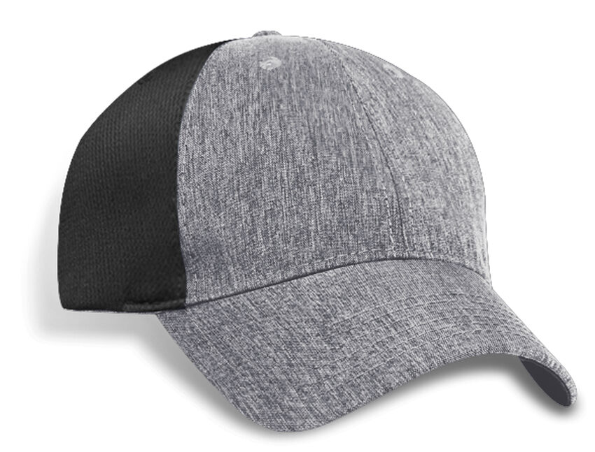 casquette de 6 sections · devant rigide · devant, sous-visière, bouton en Tweed Milan · panneaux arrière et coté en filet "Pinapple" contrastant · 6 oeillets assortis · visière avec 6 lignes de couture · 2 panneaux "pro-stitch" · bandeau et rubans assortis de couleur de panneux cotés · fermeture à rabat crochet et boucle · visière pré-courbée · importé