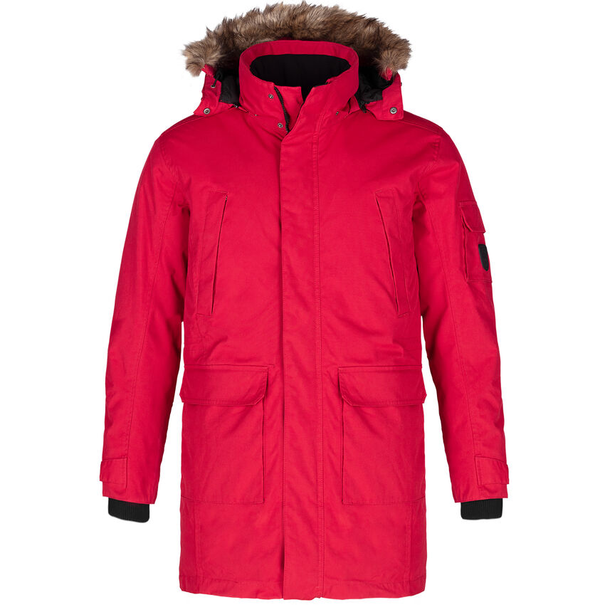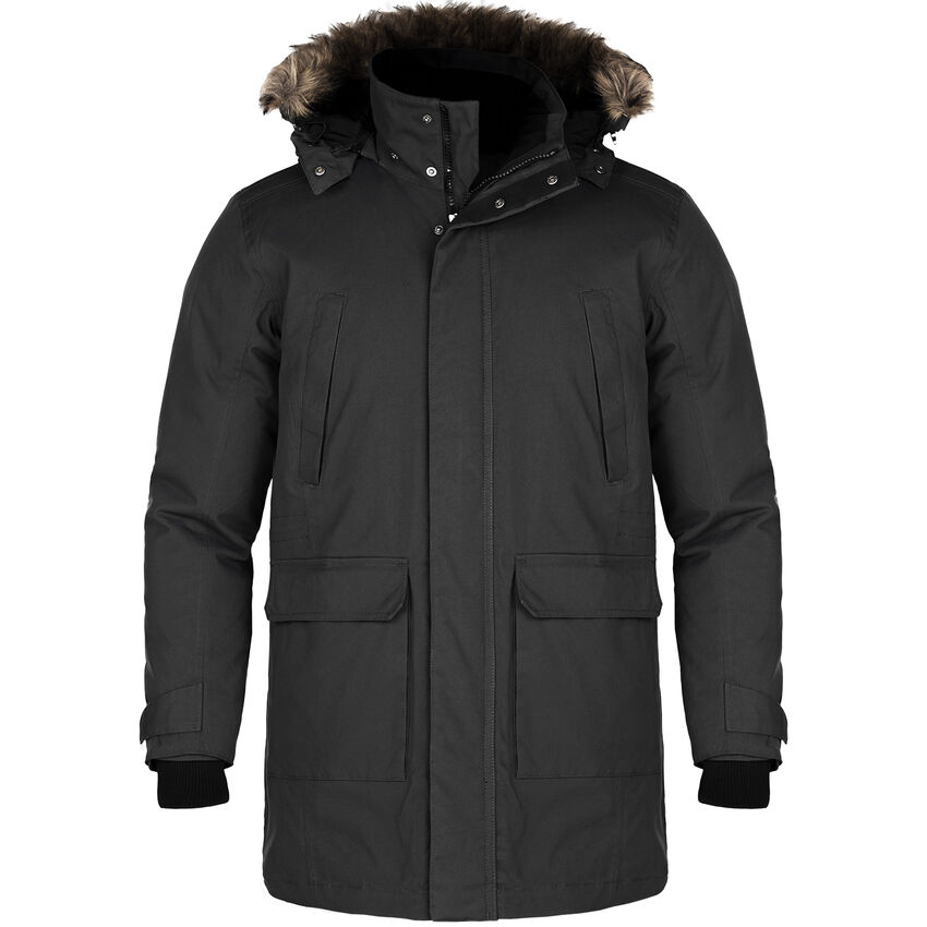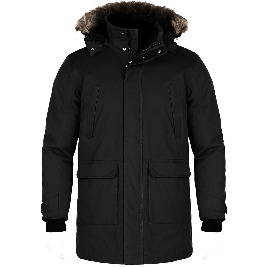 Coquille extérieure 100 % nylon avec enduit imperméable respirant. Vêtement doté de coutures complètement scellées et d’une entredoublure isolante Thermore. Capuchon et garniture en fausse fourrure amovibles. Neuf poches extérieures et deux poches intérieures. Poignets intérieurs contre les intempéries et cordon de serrage à l’ourlet. Glissière YKK à double curseur à l’avant.