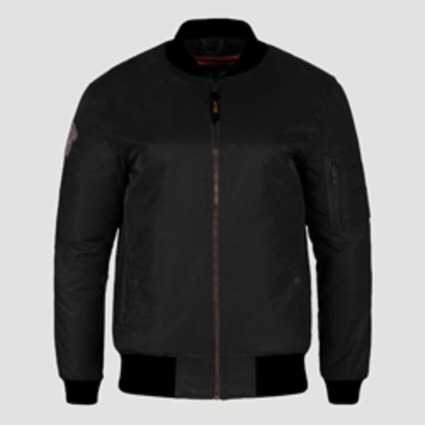 Coquille extérieure 100% sergé de nylon avec enduit hydrofuge. Entredoublure isolante 100% polyester avec poignets, col et ceinture en tricot à côtes. Doublure orange en satin 80% polyester et 20% coton. Poches à boutons-pression à l’avant, poche à glissière sur la manche gauche et deux poches intérieures. Fermetures à glissière YKK.