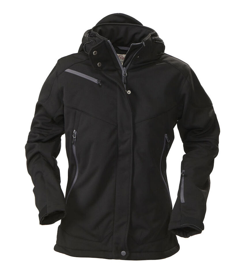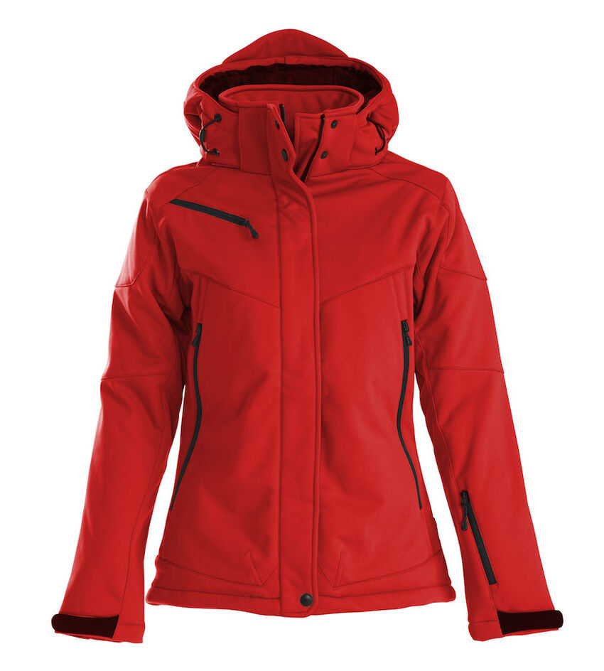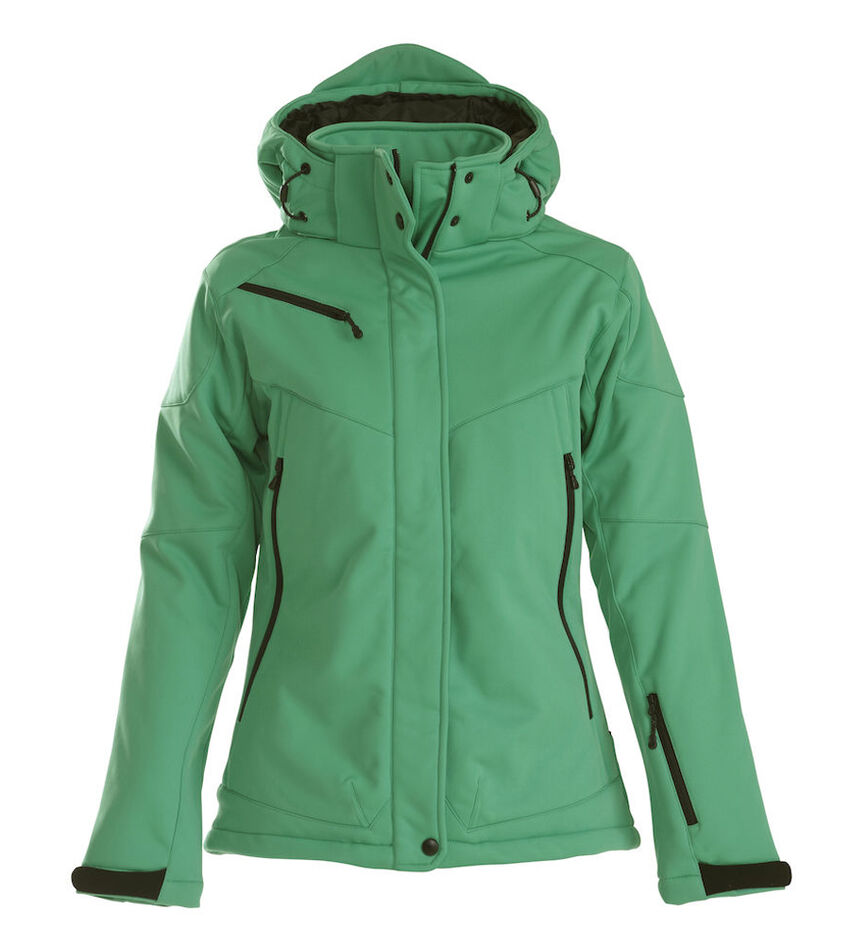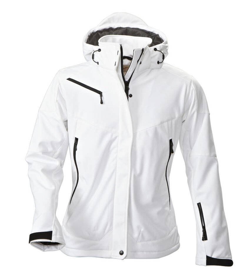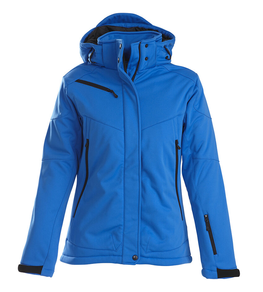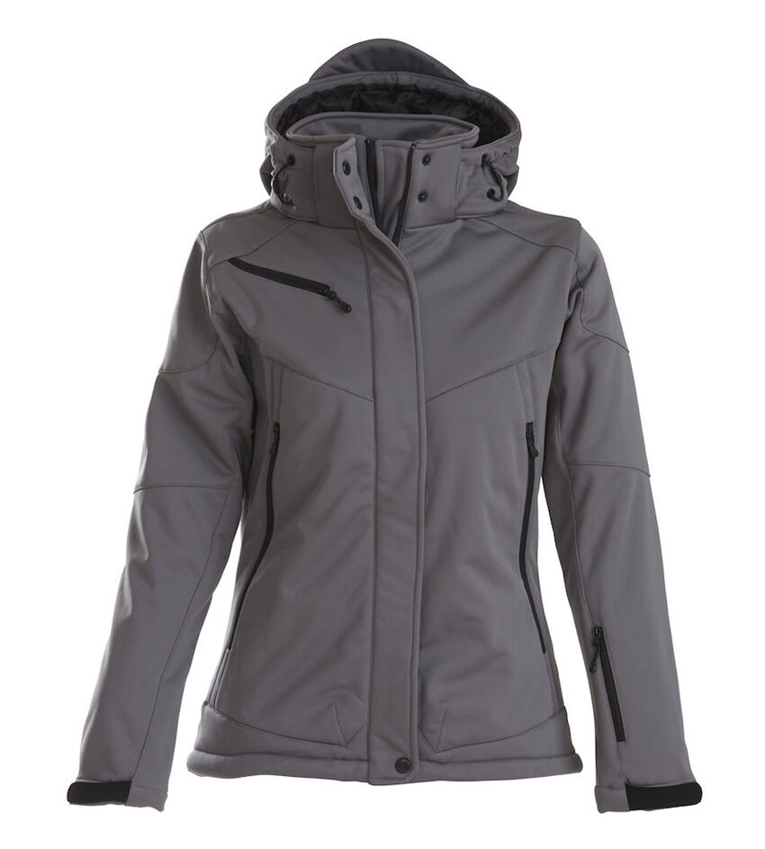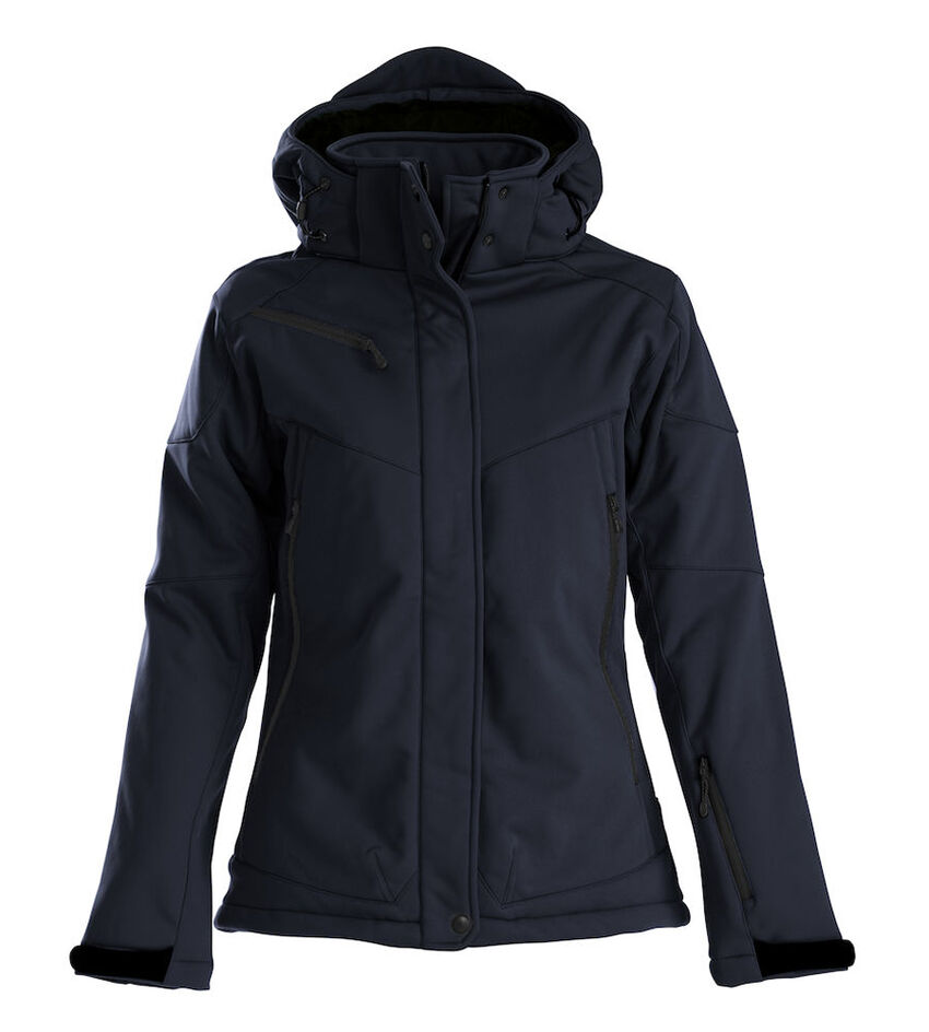 Veste softshell rembourrée avec capuche amovible, manches pré-courbées, cordon de serrage à l'ourlet du bas et réglage velcro au bas des manches.Poches avant et poche poitrine avec fermeture éclair, 2 poches intérieures avec fermeture éclair et une poche filet.MATÉRIEL