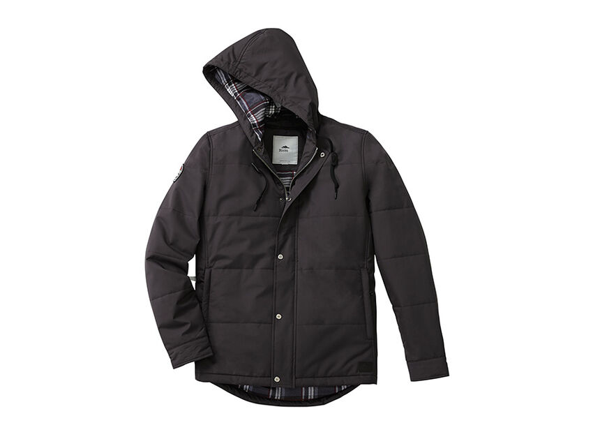 Aucun détail n'a été oublié, du cordon de serrage à embout en similicuir au niveau du capuchon à la doublure à carreaux brossée, en passant par l'ourlet à cordon élastique